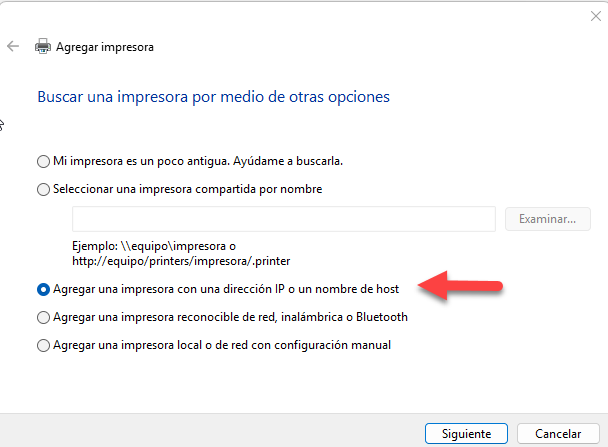 Le damos a agregar impresora o un escáner y cuando nos salga la opción de Agregar nuevo dispositivo manualmente le damos