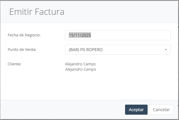 El sistema generará inmediatamente una factura oficial basada en el ticket seleccionado.