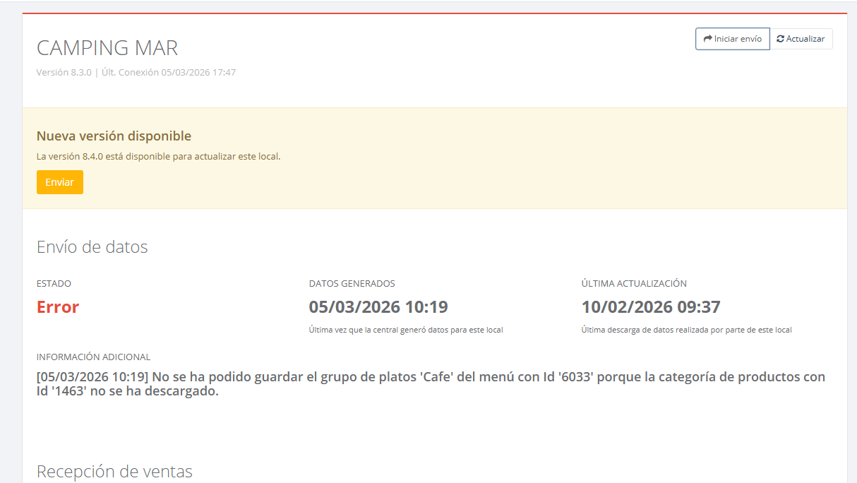 Una vez hecho el agregado del local > Enviamos datos