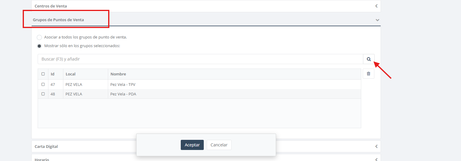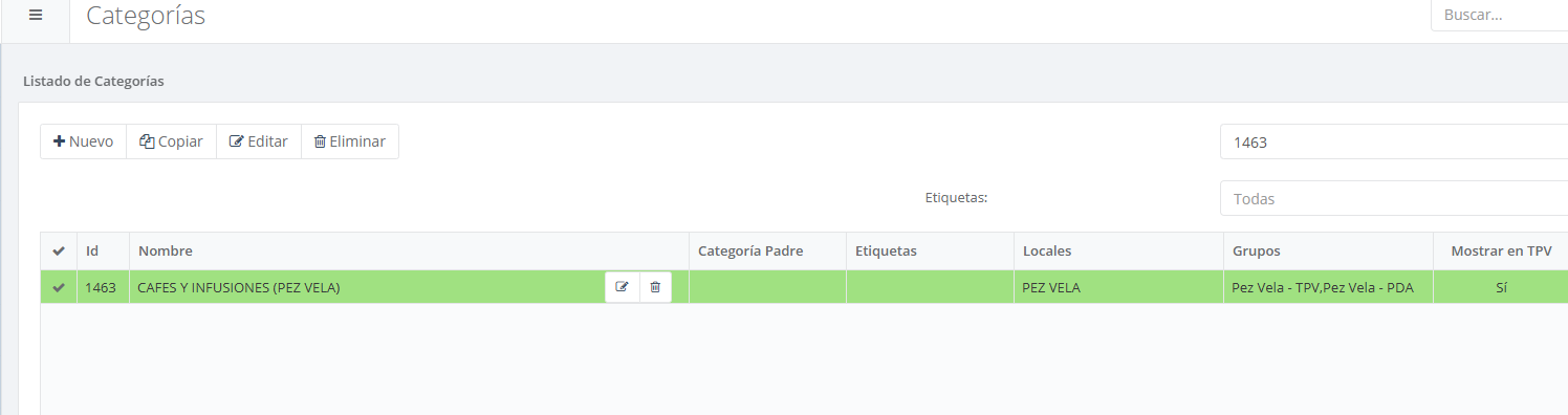 Una vez comunicaciones nos indique "CORRECTO", debemos deshacer lo hecho con los locales asignados a la categoría