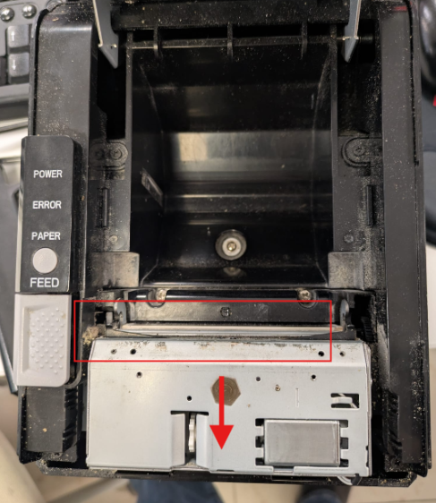 Una vez abierto , veremos una pequeña rueda blanca que es la que controla la cuchilla. La deslizamos hacia nosotros para poder acomodarla