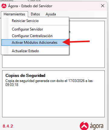 Vamos al servidor > Herramientas > Activar módulos adicionales