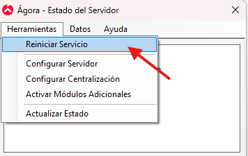Aceptamos > Vamos nuevamente a “Herramientas” > Reiniciamos Servicio