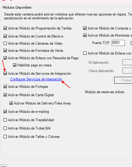 Activamos el módulo y vamos al texto en azul de "Configurar Servicios de Integración"